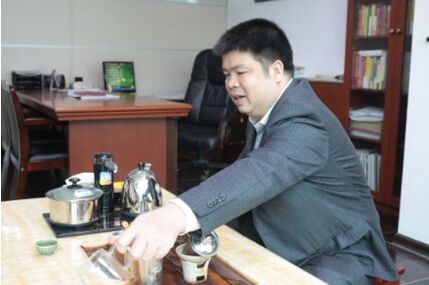 在营销中心参观其占地2000多平方米的展厅后,赖永精在他办公室为记者泡茶,用粤式普通话讲述他的定制“门道”以及卡诺亚的20亿目标。在他身后,挂着字画“天道酬勤”和“慎独”。